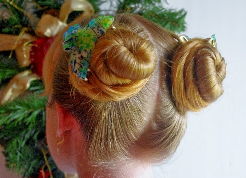 This is one of my favorite hairstyles but I rarely fix my hair this way because it is a little over-the-top~ double cinnamon buns :-) I'll call it my Cindy-Lou Who 'Do since it's Christmas time and this hairstyle reminds me of the cute little girl on the Grinch cartoon. Merry Christmas!